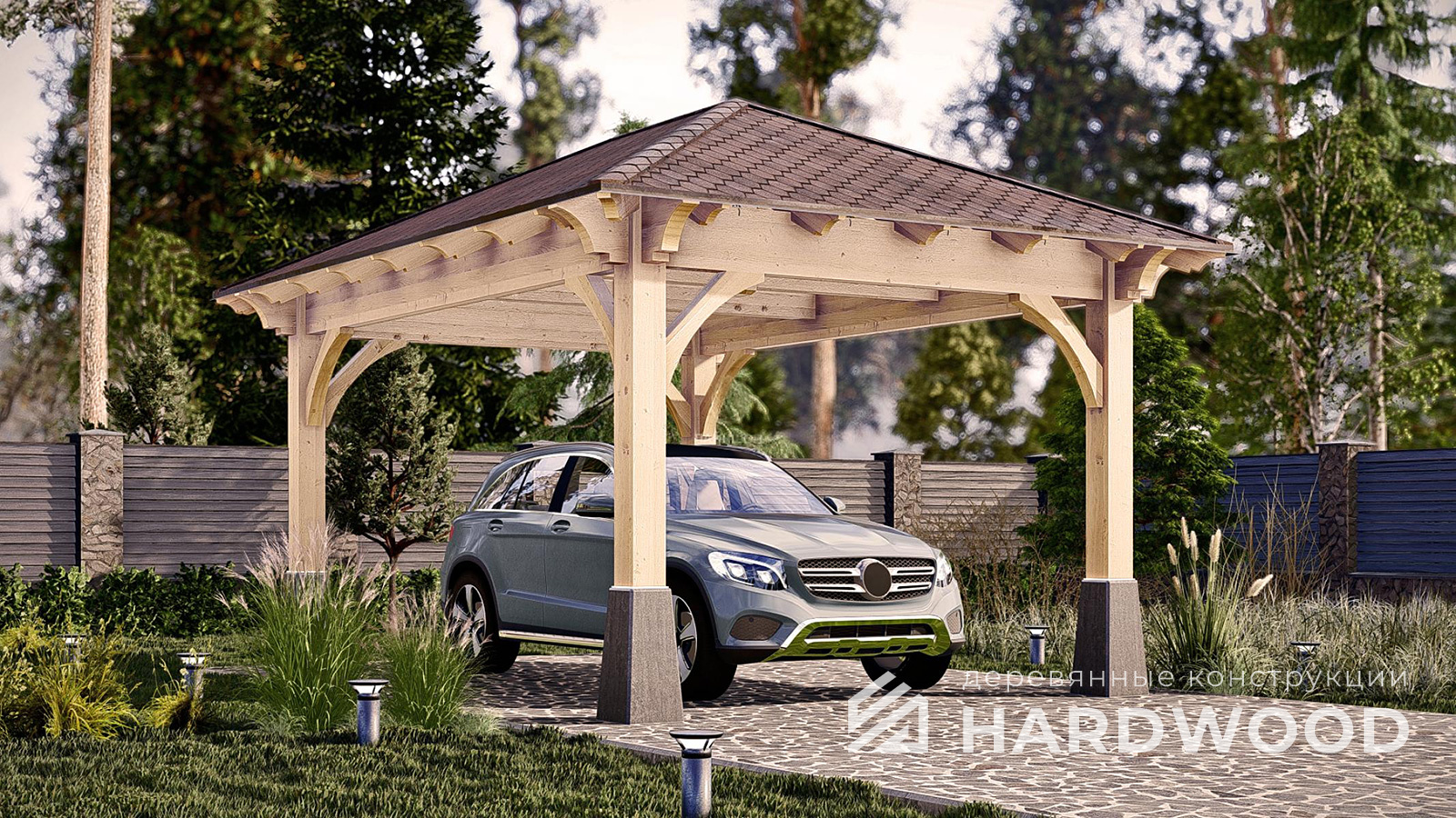 Деревянные навесы для автомобилей по акции